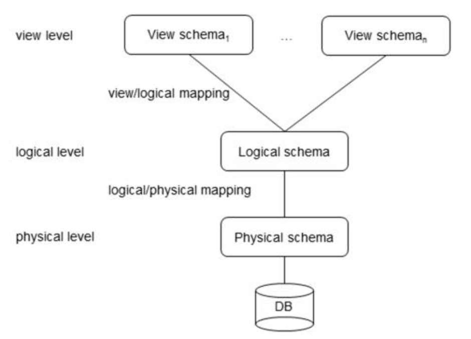 physical schema > logical schema > view schema 순으로 복잡하다.